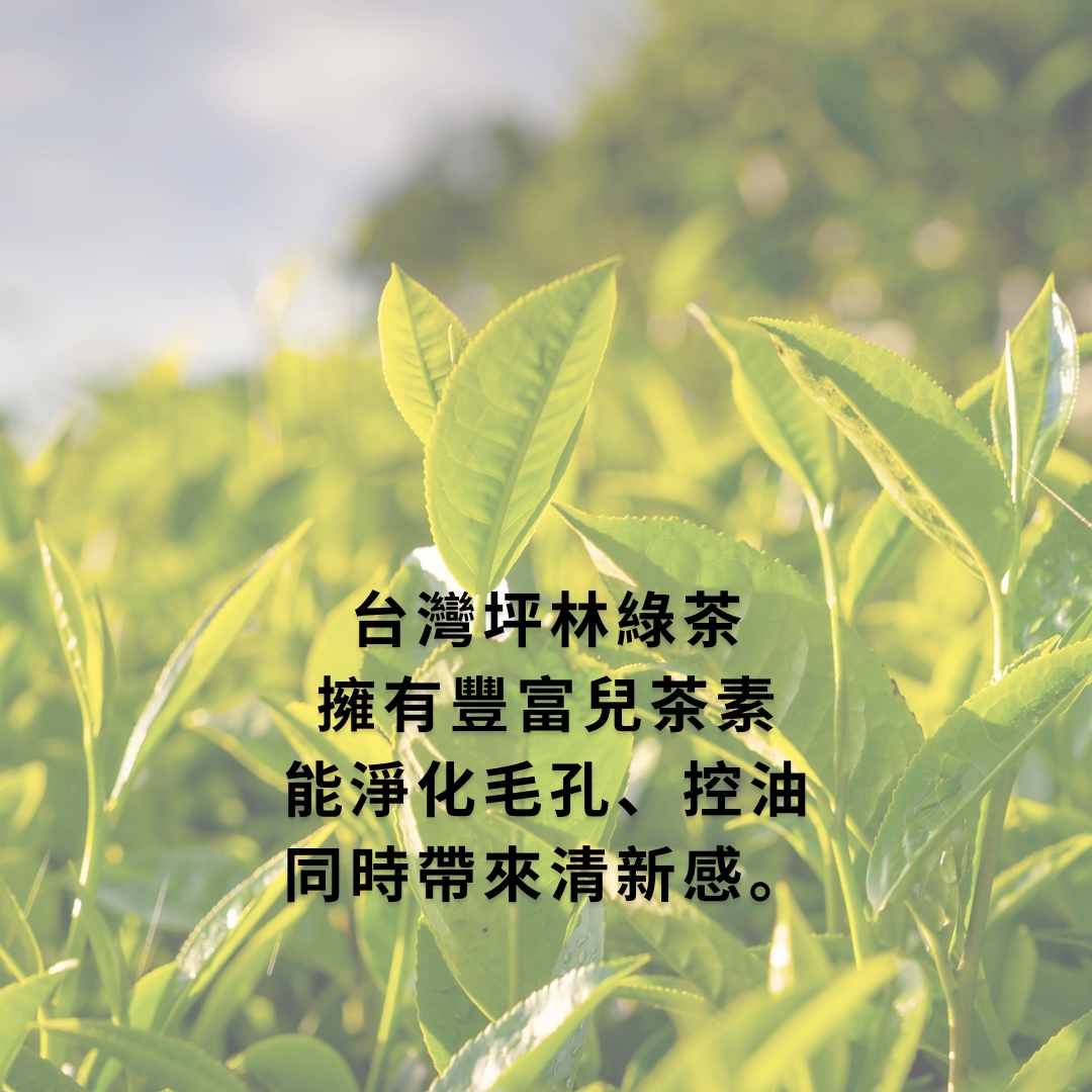 ‧台灣坪林綠茶:擁有豐富兒茶素,能淨化毛孔、控油同時帶來清新感。