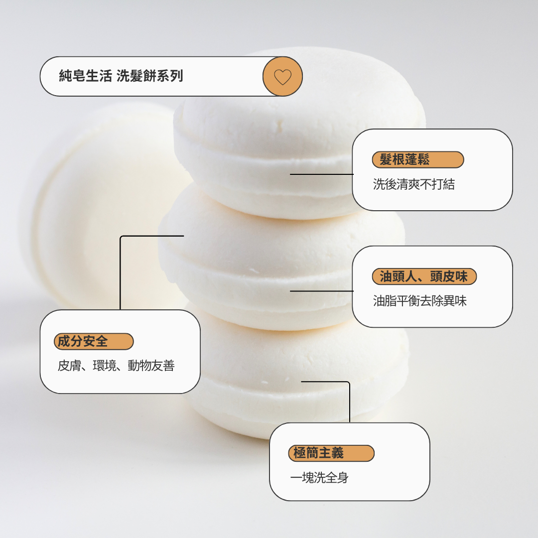 洗髮餅可以想城是無水洗髮精,因無水份而不需要過多的防腐成分。